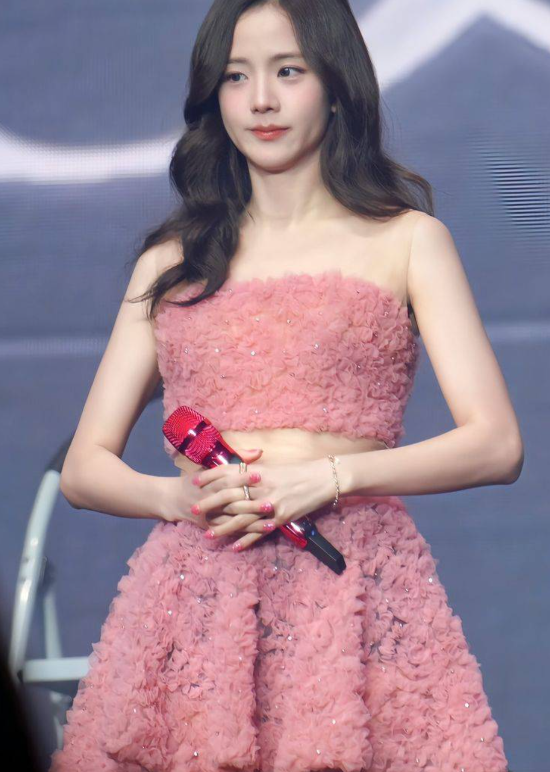 두 번째 사진 속 지수는 완전히 다른 분위기를 연출하고 있습니다. 플라워 패턴이 돋보이는 핑크 드레스를 입고 등장한 그녀는 한 송이 꽃처럼 화사하고 우아한 매력을 발산했습니다. 무대에서 빛나는 그녀의 미소와 여유로운 무대 매너는 팬들에게 행복을 전해주죠.