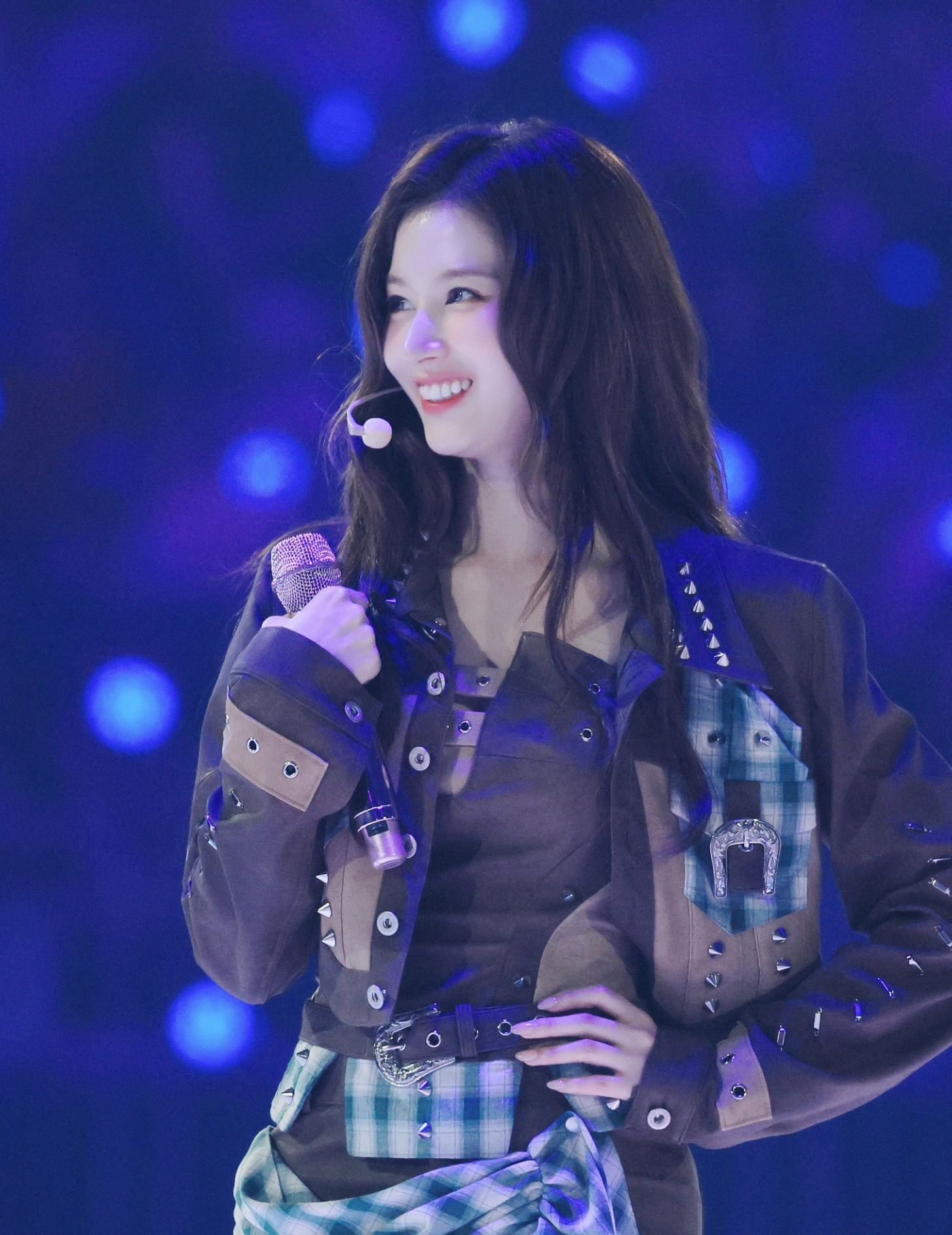 ์ฌ์ง ์ ๊ณต์ฐ์๋ ์ง์ ๋ธ๋ผ์ด ๊ณ์ด์ ์์ผ๊ณผ ์ฒดํฌ ํจํด ํฌ์ธํธ๊ฐ ์กฐํ๋ ์คํ์ผ๋ง์ ์ ๋ณด์ด๊ณ ์์ต๋๋ค.